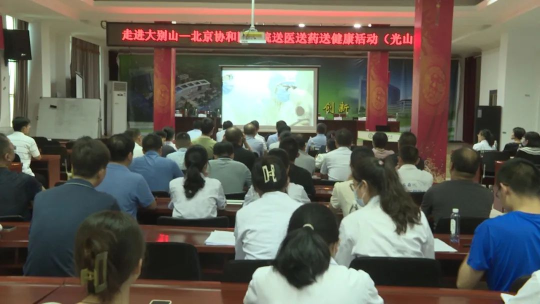 揭牌仪式后,北京协和医学院师生一行走进县人民医院开展“走进大别山-北京协和医学院送医送药送健康”活动,阜外医院心内科教授、主任医师,博士生导师周宪梁开展了“高血压的诊断及治疗进展”专题健康讲座,并就高血压疾病的预防、诊疗与在场医生进行了深入交流。同时,阜外医院教授李崇剑和田涛在县人民医院心内科开展了疑难病例讨论及心内科介入手术现场指导。