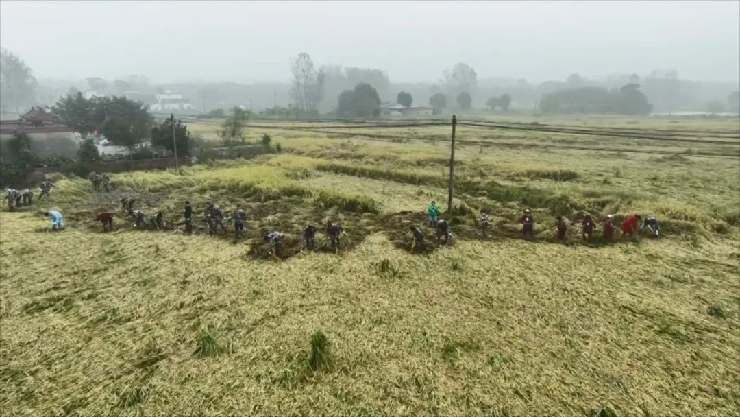 “双节”期间,罗陈乡迅速行动,前往张楼村帮助农户抢收倒伏稻谷。