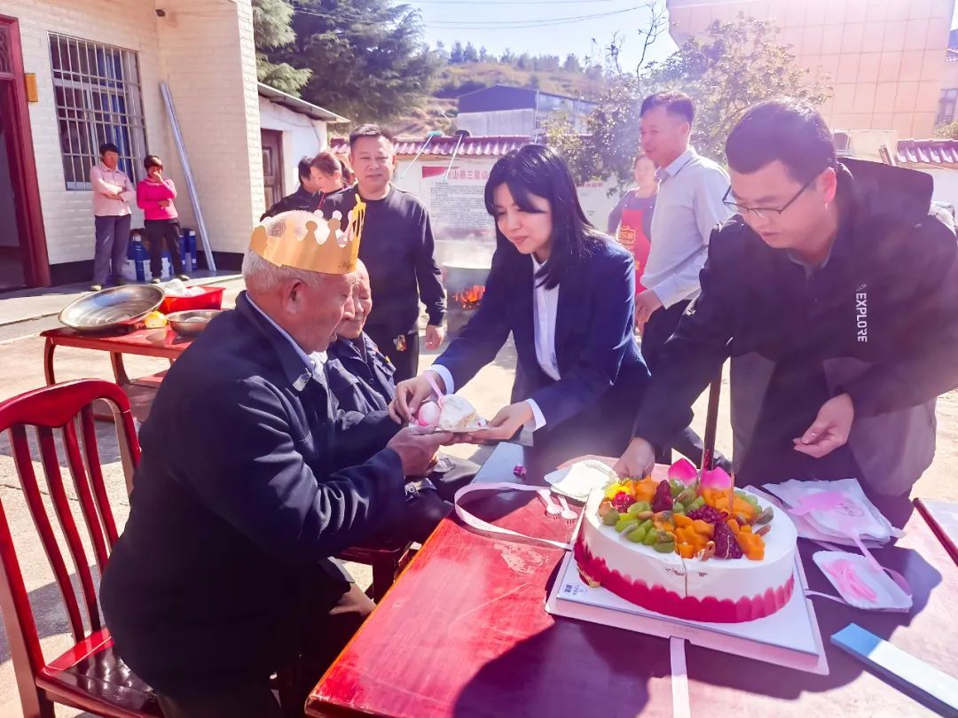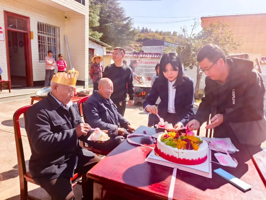 县融媒体中心党支部还为老人们准备了大米、油、热水瓶等慰问品,为他们送去党组织的关心和温暖,并向他们致以节日的问候。现场还为三位当月过生日老人准备了生日蛋糕,为寿星们送去最真诚、最温馨的祝福。大家和老人围坐在一起,相互话家常,现场气氛温馨又充满欢乐。