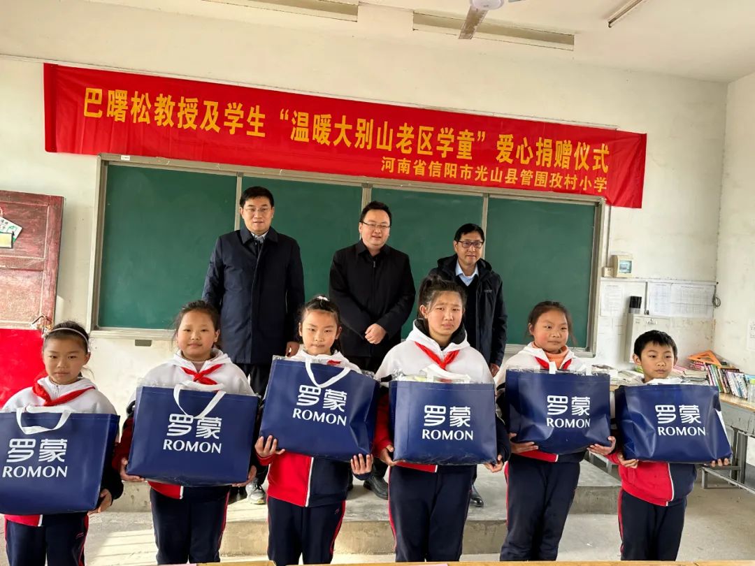 巴曙松教授及学生团队心系大别山老区教育事业,在寒冬来临之际,筹集了 2 万余元款项,为光山县晏河乡管围孜村 76 名小学生每人购置了一套御寒用的冲锋衣。