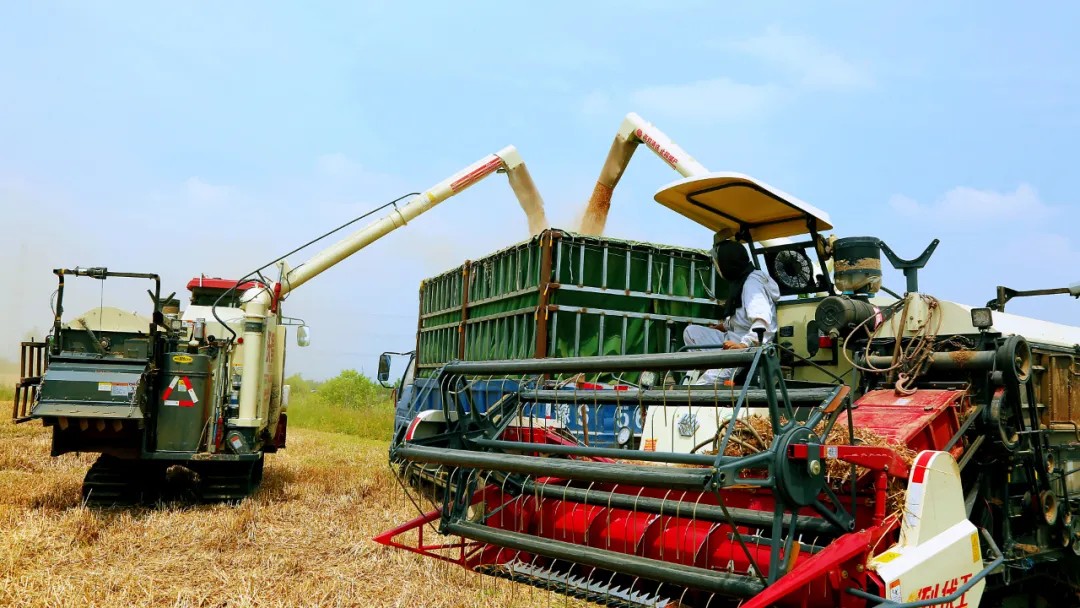 光山豫谦农业发展公司技术员杨开术说:“我们公司2023年在光山县孙铁铺镇流转了土地一万五千亩,种植小麦八千亩,通过精细化科学管理,小麦长势好、产量多、品质优、赤霉病防治好,小麦已经成熟,开始收割,预计亩产量900斤以上,我们今天组织小麦收割机10多台,计划4天全部割完。”