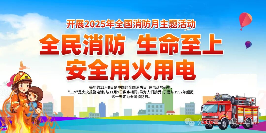 全国消防安全日是每年的11月9日。在电话号码中,"119"是火灾报警电话,与11月9日数字相同,易为人们接受,于是从1992年起把这一天定为全国消防安全日。消防安全的重点工作,不是光凭11.9一天就可以宣传到位的。于是,各地区,各单位均在11月积极组织开展消防安全宣传活动工作,逐渐的11月演变成了消防安全月。