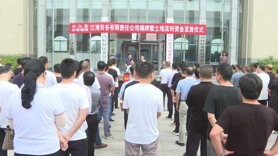 7月18日,孙铁铺镇江湾村举行江湾劳务有限责任公司揭牌暨土地流转资金发放仪式。